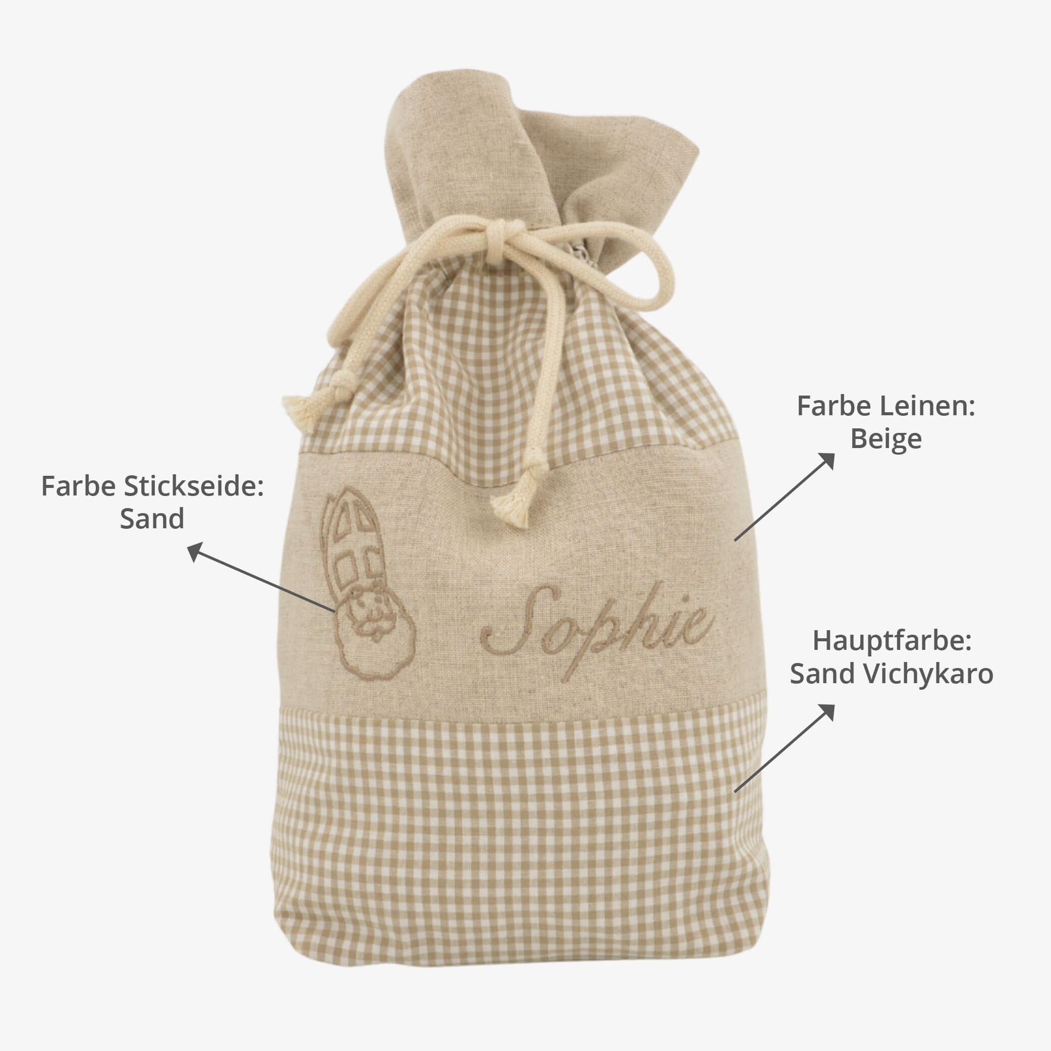 Das Nikolo-Säckchen erfreut Jung und Alt – es ist zeitlos und mit unserer Personalisierung das perfekte Geschenk rund um die Feiertage zu Weihnachten. Auf diese Weise wird die Tradition von Nikolaus hochgehalten und von großem Kind zu kleinem Kind weitergetragen.